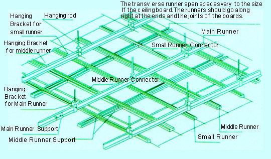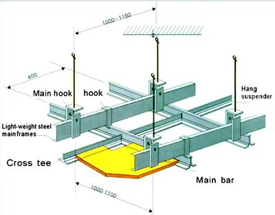 The measure of area where to install the aluminum alloy frame and the gypsum board should be more than 200 square meters,and the broad of the corridor should be more than three meters,and the size of the gypsum board is 600×600